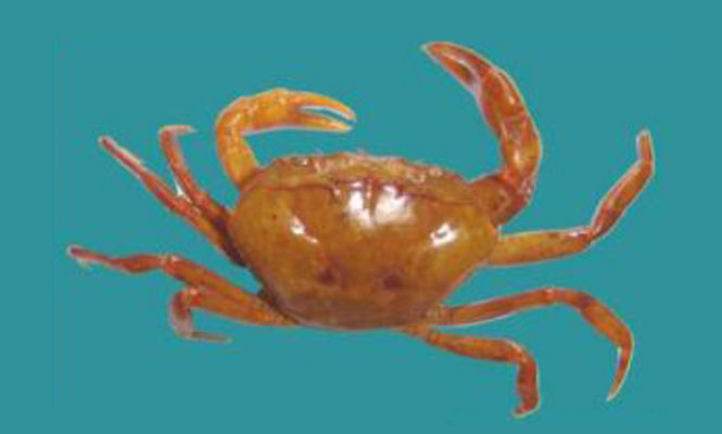 The carapace of this species is broad, robust, and deep, displaying a gently convex, smooth, and almost polished surface. It features an H-shaped gastric groove, with a sharp and slightly concave free edge. The antero-lateral margin is curved, sharp, and either entirely smooth or faintly crenulate, with an acute epibranchial spine at its far back. The orbits are small and broad, with a prominent outer angle, a wide antennal gap, and an absence of large spines. The lateral epibranchial teeth and the front are closely situated. Unequal chelipeds are present in both sexes, with spines near the distal end of the merus. The propodus of the cheliped is broad and stout but not compressed, and the dactylus is longer than the palm. The inner angle of the carpus is strong, stout, and sharp-pointed. The legs are stout, with strong dactyls longer than the propodites. There are no setae or carinae on the dorsal surface, but the epibranchial and mesobranchial regions are swollen. The eyes are moderate in size, and the outer margin of the eye has a U to V-shaped incision. The coloration is variable, with the dorsal surface of the carapace and cheliped being reddish-brown. The ventral surface of the carapace is light yellowish, while the periopod and ventral surface of the cheliped are light-brown. The dorsal surface may have minute patches of brown spots and appear poorly ridged. Additionally, the dorsal surface of the carpus and the outer margin of the propodus and dactylus may have brown spots, sometimes minutely tuberculate.